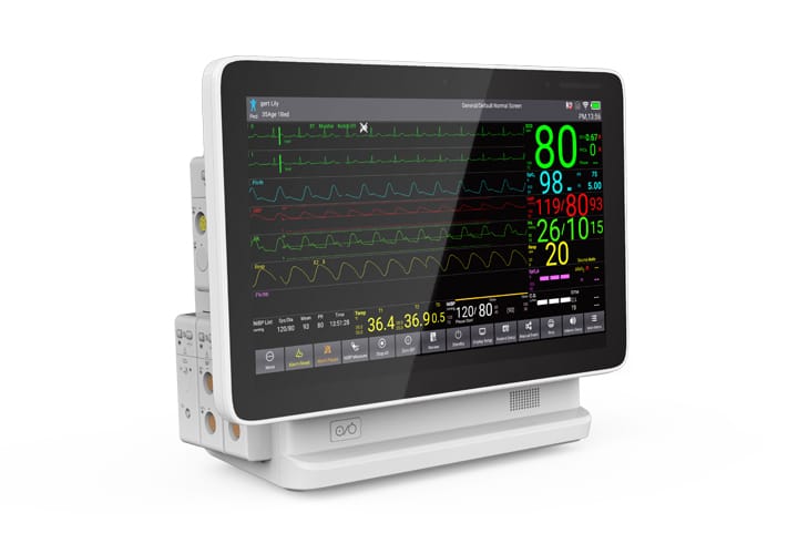 – Design modular: 5 sloturi pentru module hot-swappable (ECG, SpO₂, NIBP, TEMP, CO₂, IBP etc.), fără oprire