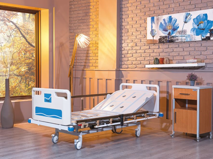 Pat spital electric cu 2 motoare TM4060 fabricat din oțel vopsit electrostatic, cu tăblii din ABS.