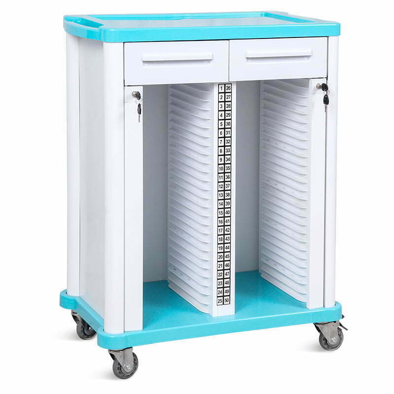Troliu pentru dosare medicale prevazut si cu 2 sertare, fabricat din ABS.